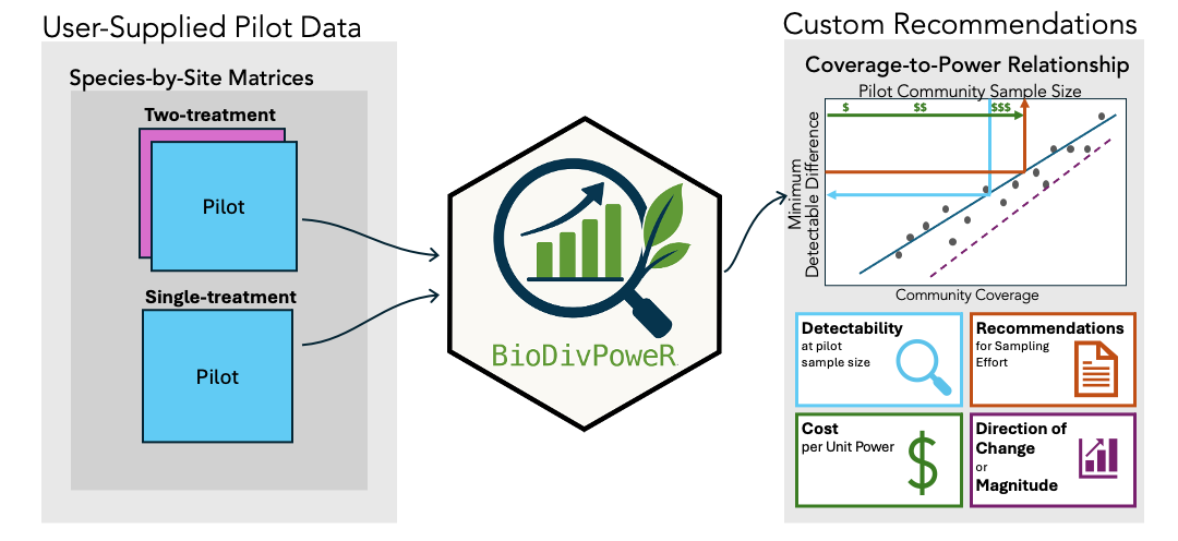 This package integrates the simulation-based power analysis workflow developed by Tekwa et al. (forthcoming) on user-input pilot data, and allows users to assess several indicators of sampling power given unique community compositions.